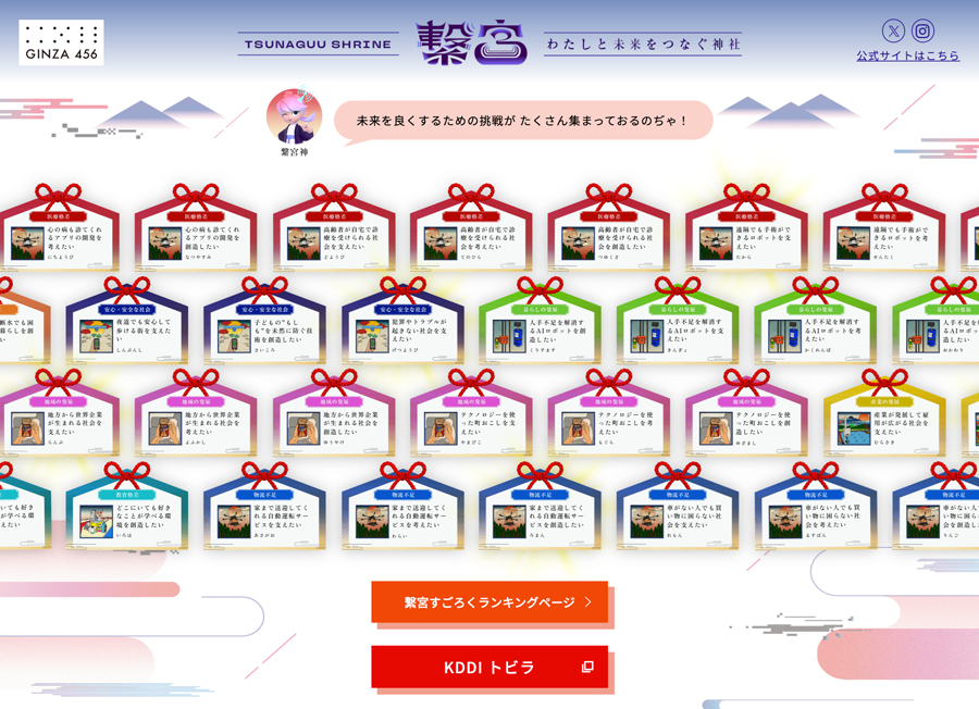 KDDIは2025年11月15日から、KDDIのブランド体験施設「GINZA 456 Created by KDDI」(以下 GINZA 456)において、KDDIの「つなぐチカラ」による社会課題解決を学べる体験型イベント「繋宮(つなぐう)~わたしと未来をつなぐ神社~」(以下 本イベント)を開催します。