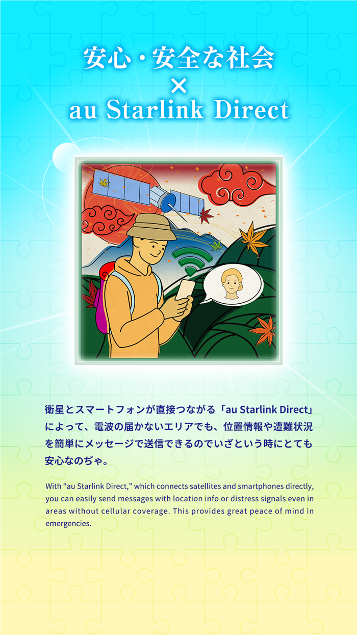 本イベントは、これからの未来を担う若い世代が「夢中に挑戦」することや社会課題の解決を、KDDIが「つなぐチカラ」で支えていることを具現化したものです。「安心・安全な社会」「災害対策」「環境破壊」など10種類の社会課題とその解決手段である「つなぐチカラ」を、パズルやすごろくを通じてゲーム感覚で楽しみながら学ぶことができます。