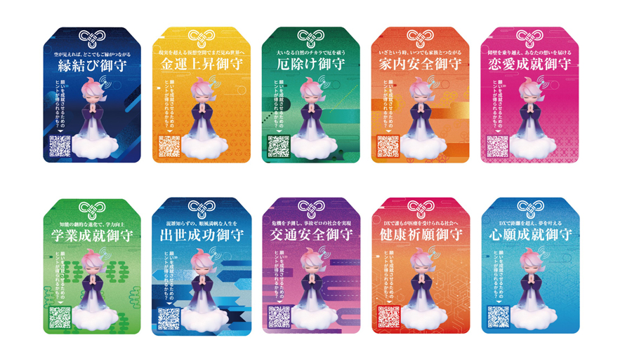 「繋宮すごろく」で得られるお賽銭(メダル)では、願いをつなぐ「繋宮御守り」(全10種類のスマホステッカー)を、「繋宮ぱずる」で得られる引換券では、未来を占う「繋宮おみくじ」(全10種類)を入手できます。