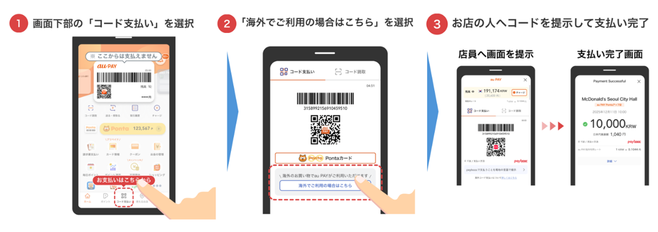 注1)、au PAY(コード支払い)の海外利用(以下 本サービス)を韓国から開始します(