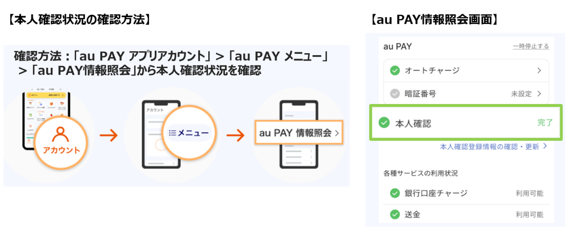 - 注2)本サービスはau PAY アプリで本人確認(eKYC)を完了したユーザーのみが利用できます。セキュリティーの関係により、海外では本人確認(eKYC)が完了できません。出国前の対応が必要です。